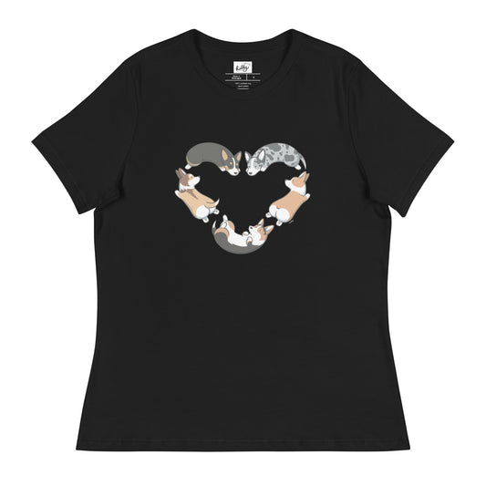 Corgis Heart Women's Relaxed T-Shirt - Black Color